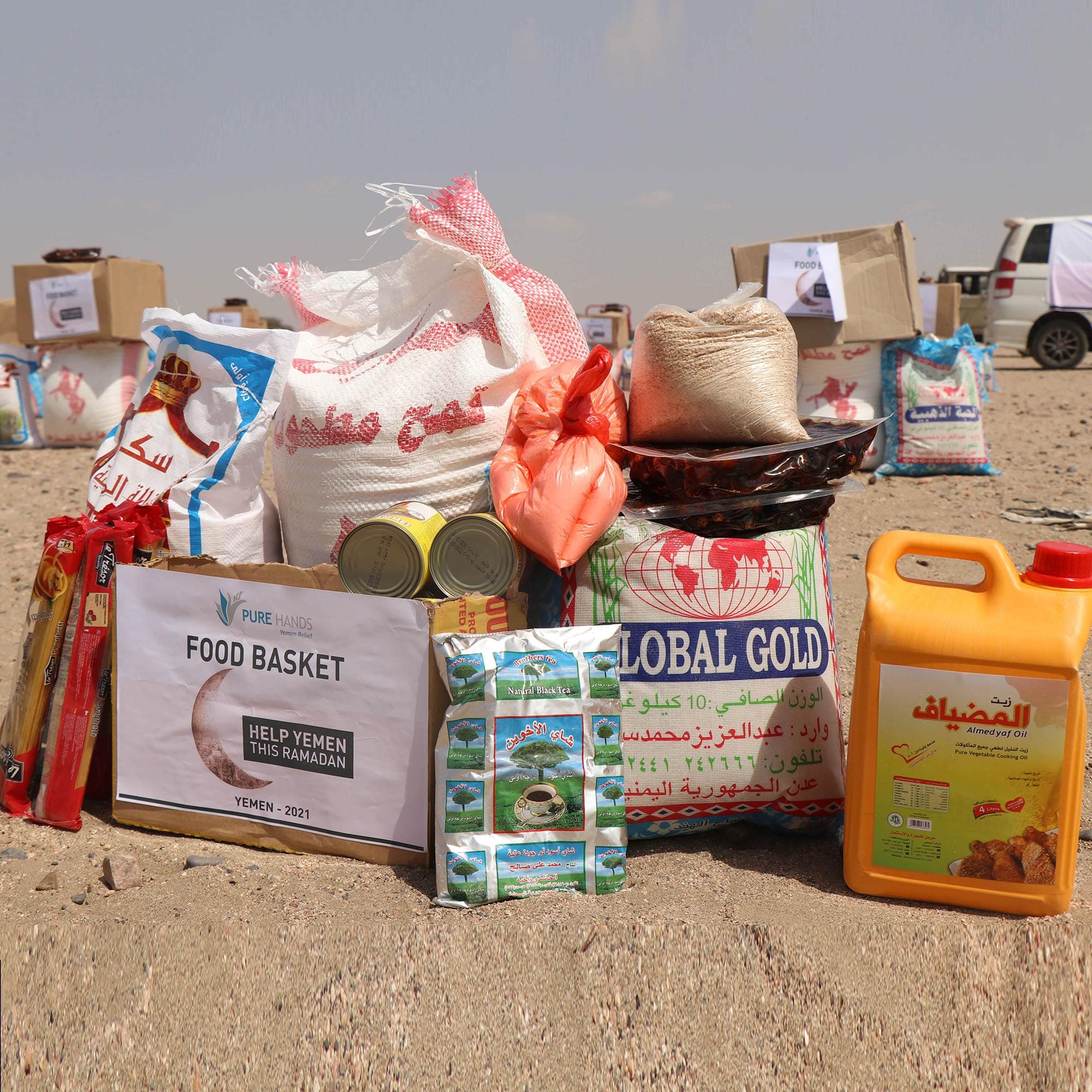 We focus a majority of our operations on the distribution of nutritious food baskets to bring immediate relief to Yemenis suffering from fatally acute malnutrition. These food baskets include a combination of powerful vitamins and minerals to help directly treat a malnourished body.